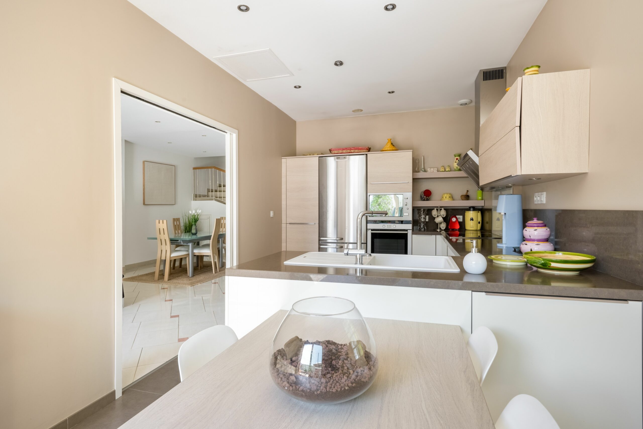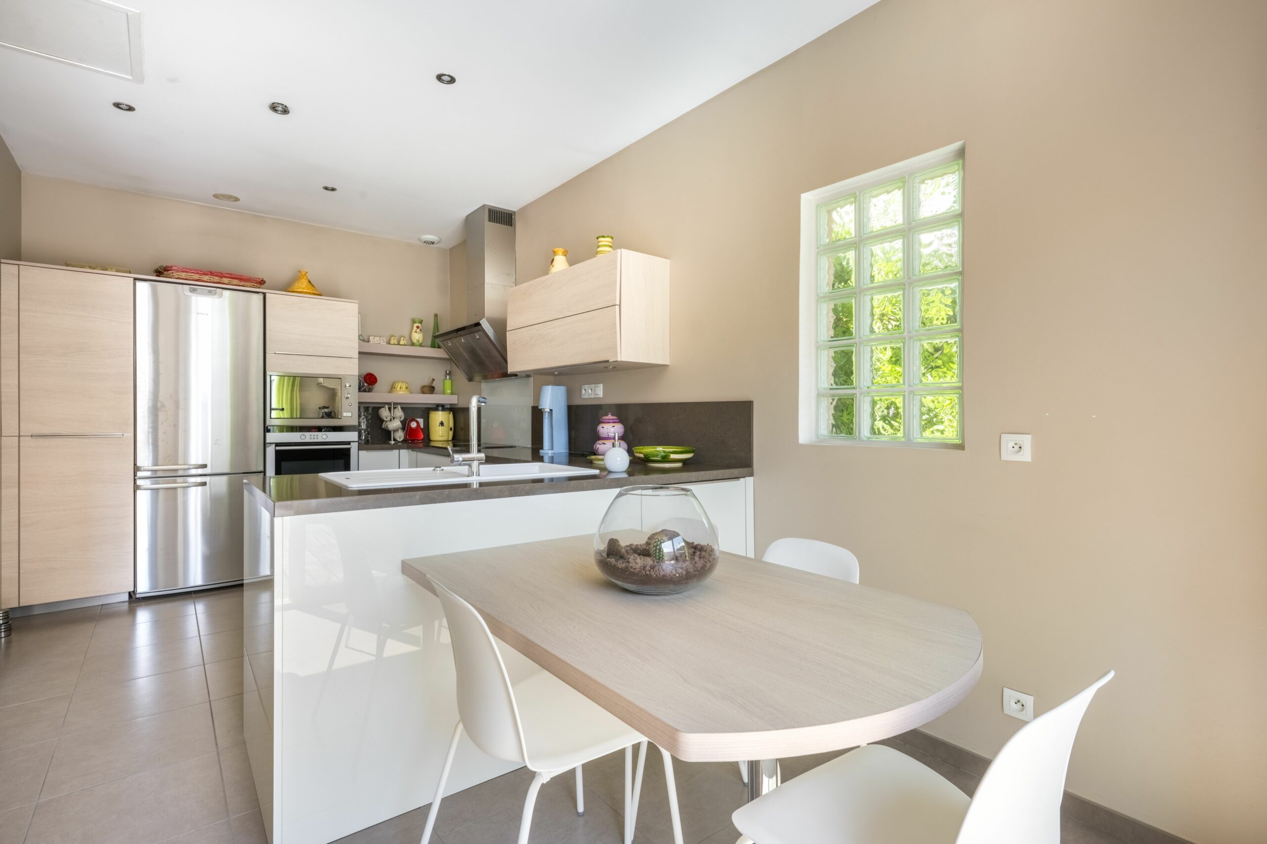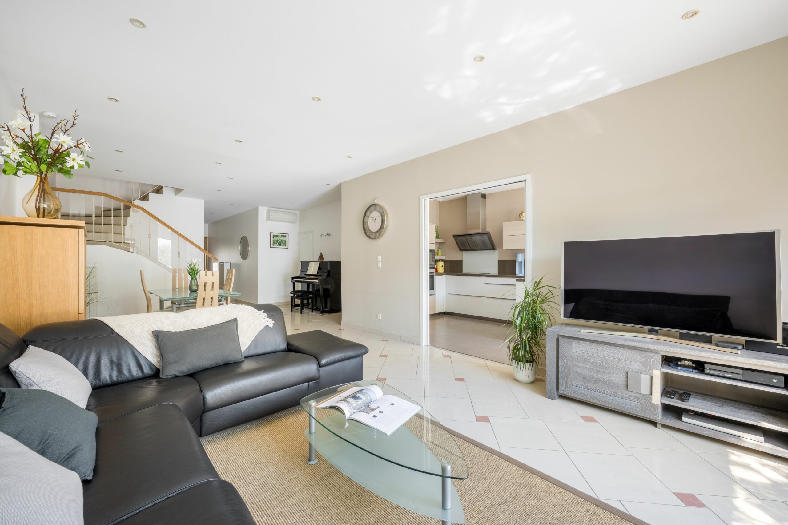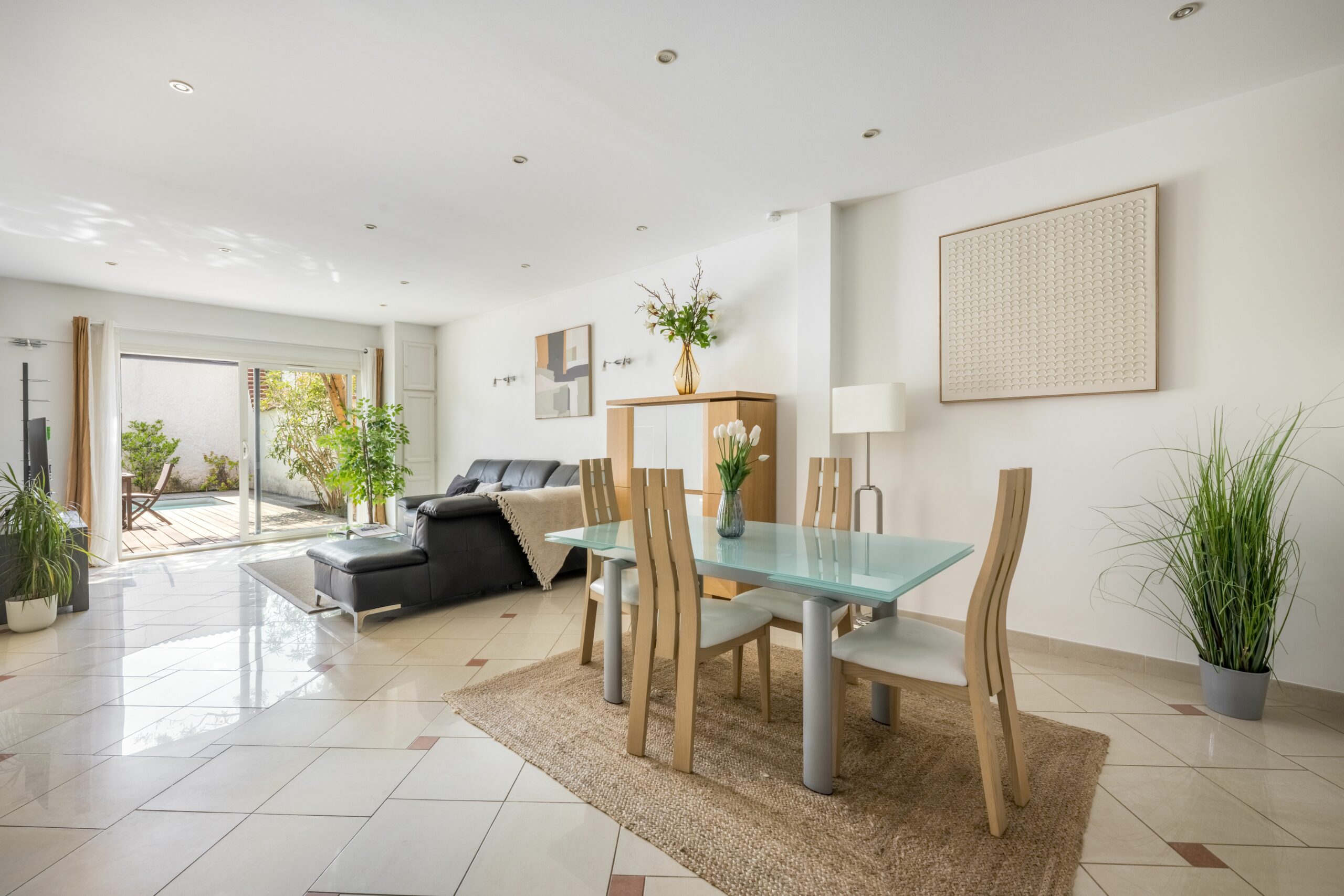 Dès l’entrée, le ton est donné avec une superbe pièce de vie de près de 58 m², véritable cœur de la maison. Baignée de lumière grâce à sa large baie vitrée, elle s’ouvre plein Sud sur la terrasse et la piscine, offrant un espace de vie rare sur le secteur, idéal pour recevoir et profiter en famille.
