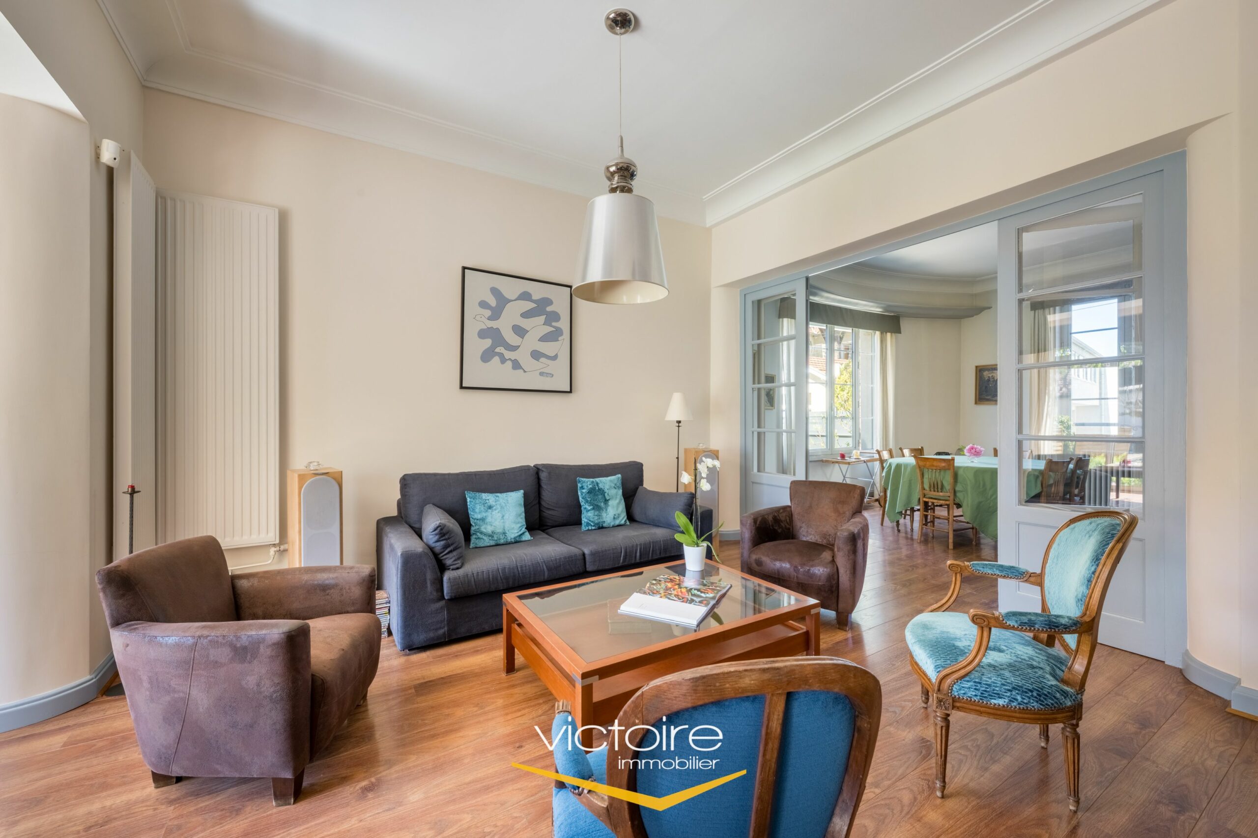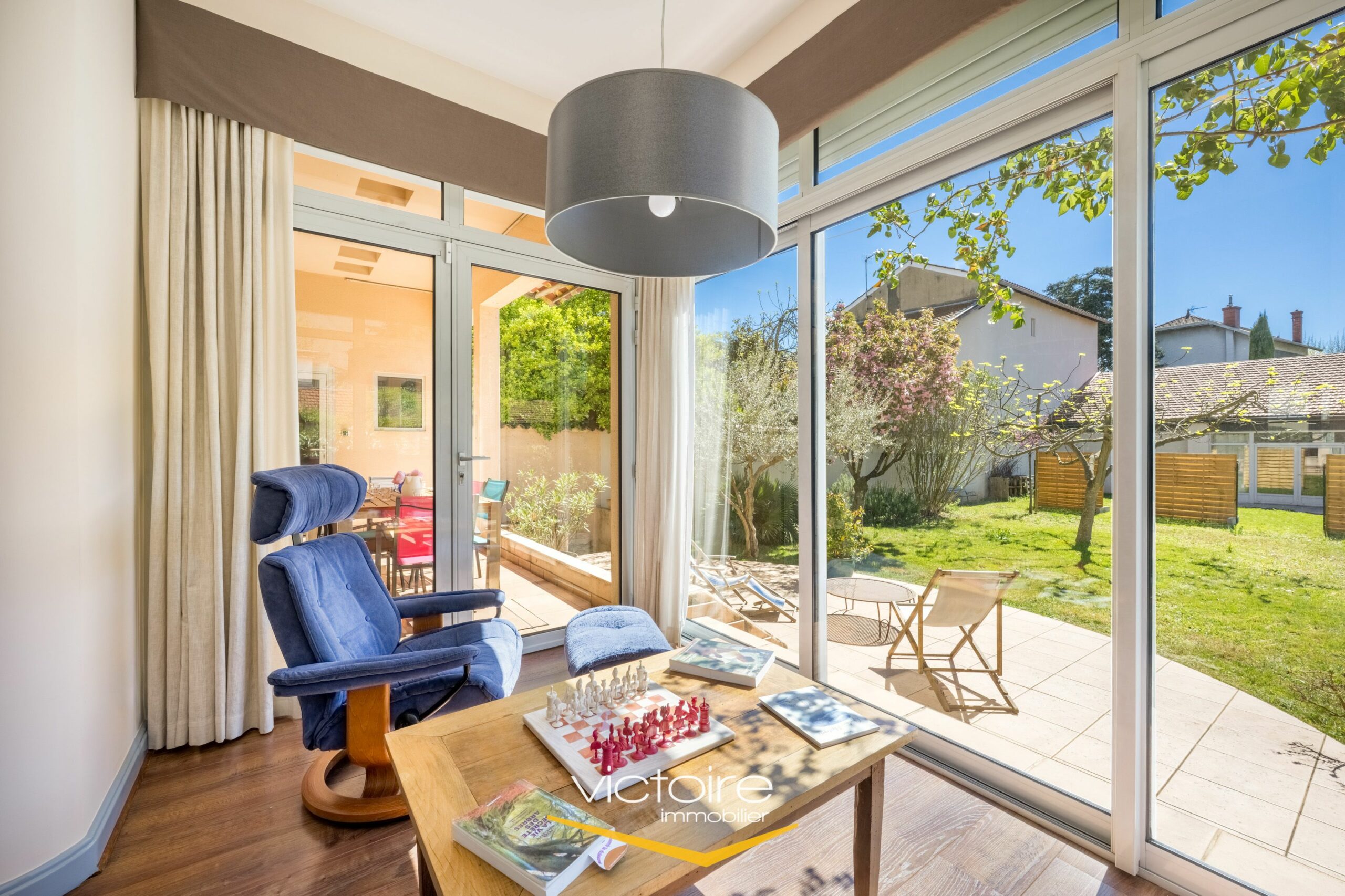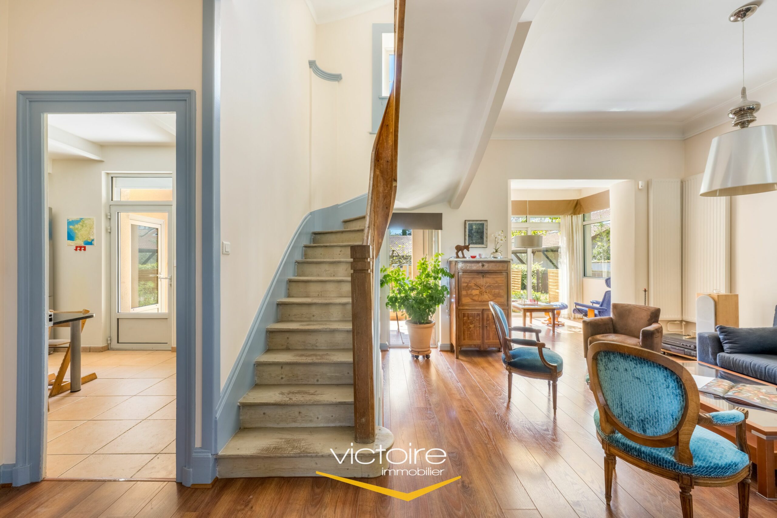 – Un espace de vie agréable et lumineux, avec une quadruple exposition; cet espace de vie de 45m² est composé d’une salle à manger et d’un coin séjour prolongé par une belle véranda donnant sur le jardin. La cuisine, voisine, est également de belle taille et c