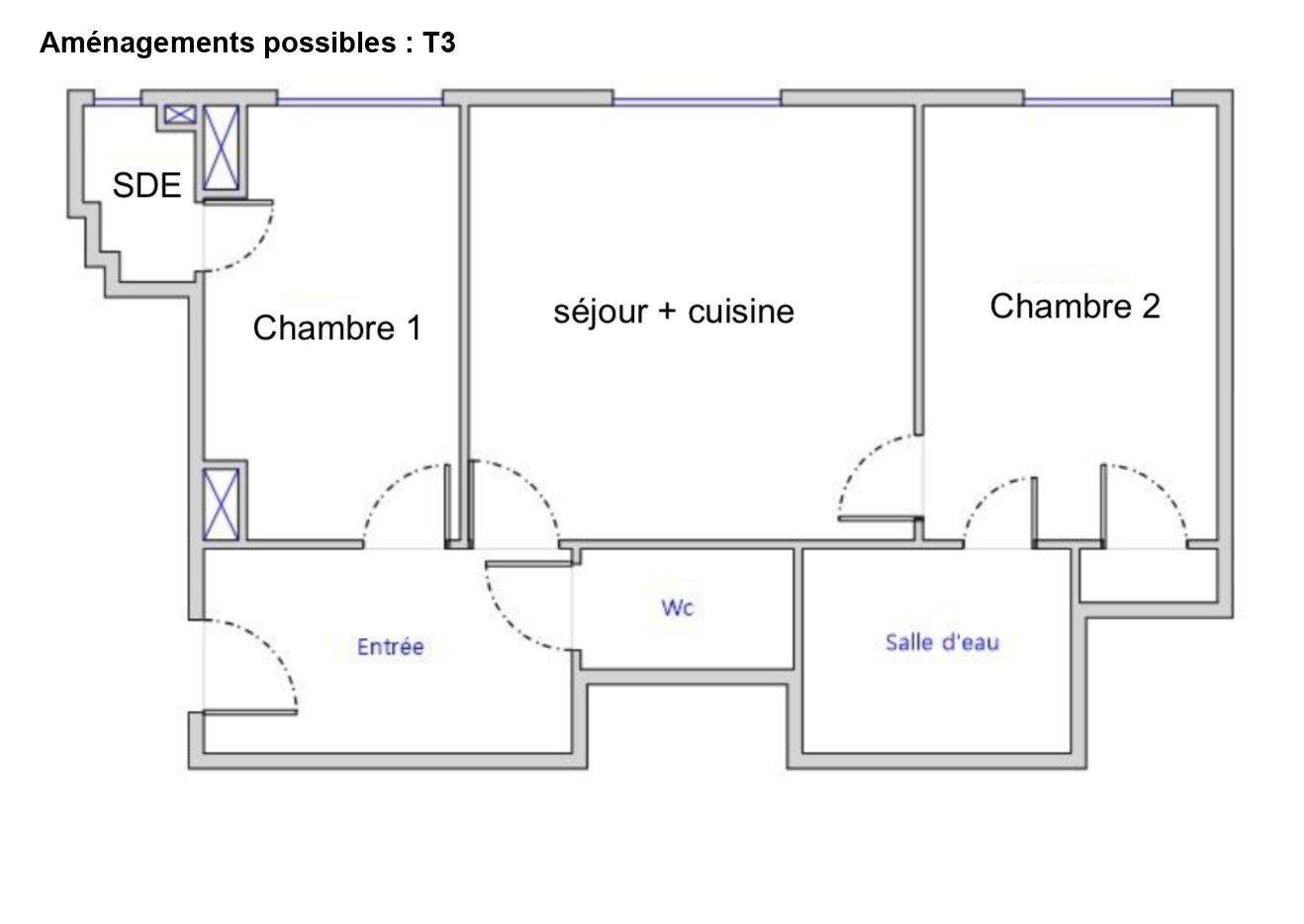 Actuellement configuré en T2, le bien peut évoluer en T3 optimisé pour la colocation, avec création d’une seconde chambre et d’une deuxième salle d’eau. Des travaux ciblés (environ 10 000 €) permettent d’en révéler tout le potentiel locatif.
